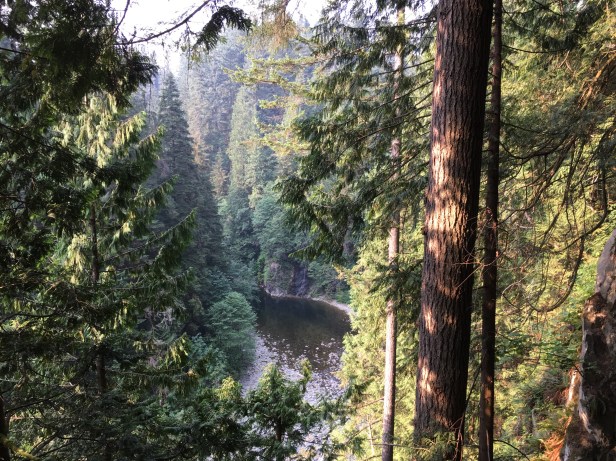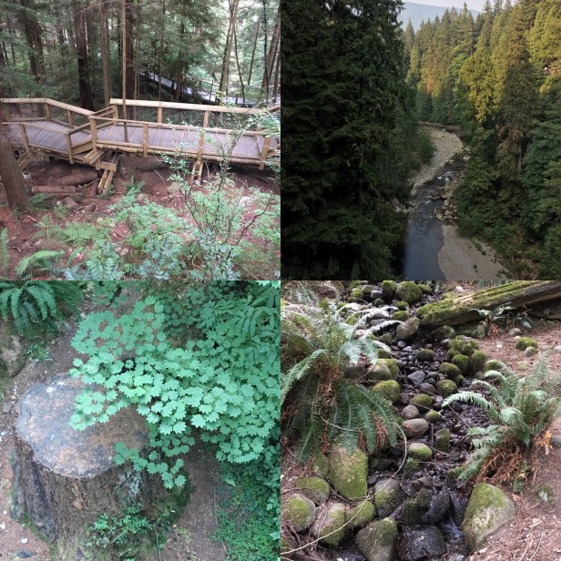As we were walking to do the Nature’s Edge trails we stop for a few minutes at Raptors Ridge and saw a great horned owl. The Nature’s Edge walk goes throughout the rainforest and has many views of the Capilano River.