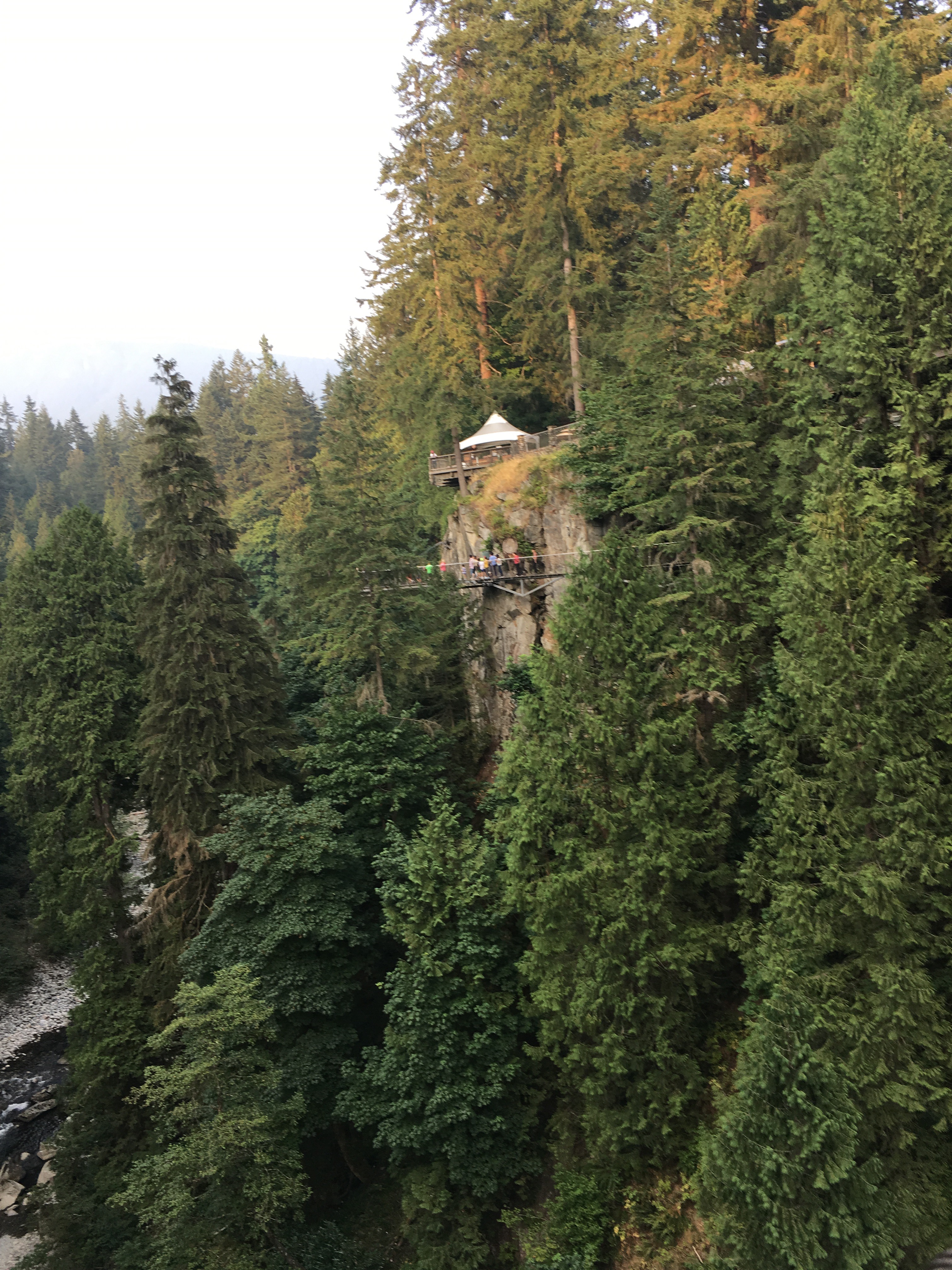 We began with the cliffwalk. The walk goes out beyond the cliff face and above the Capilano River Canyon. This was awesome!!